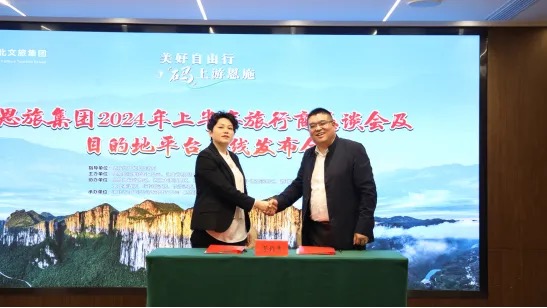 發(fā)布會上,恩旅集團(tuán)營銷公司向與會領(lǐng)導(dǎo)和嘉賓介紹了恩施旅游目的地平臺建設(shè)背景、相關(guān)功能和操作模式等。巴楚國旅、歡硒俠國旅、想游國旅、華美達(dá)酒店等旅行商及酒店代表與恩旅集團(tuán)營銷公司簽訂了平臺銷售合作協(xié)議。